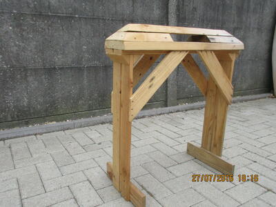 Houten zadelbok te koop aangeboden.