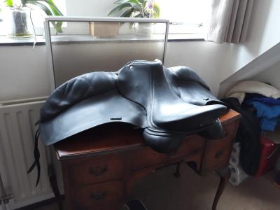Te koop wegens overlijden paard. 1e foto is van internet, de rest is het echte zadel.