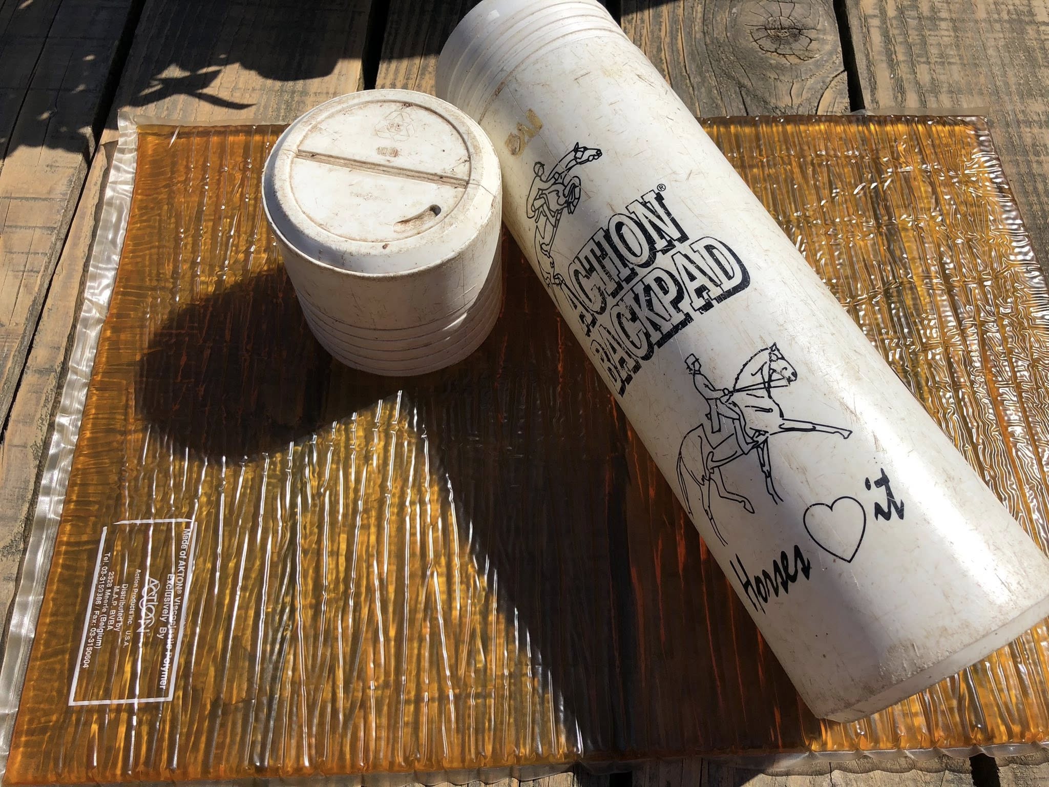 wegens overbodig, nette action backpad zadelonderlegger, inclusief opbergkoker, zonder hoes (deze zijn los te koop)