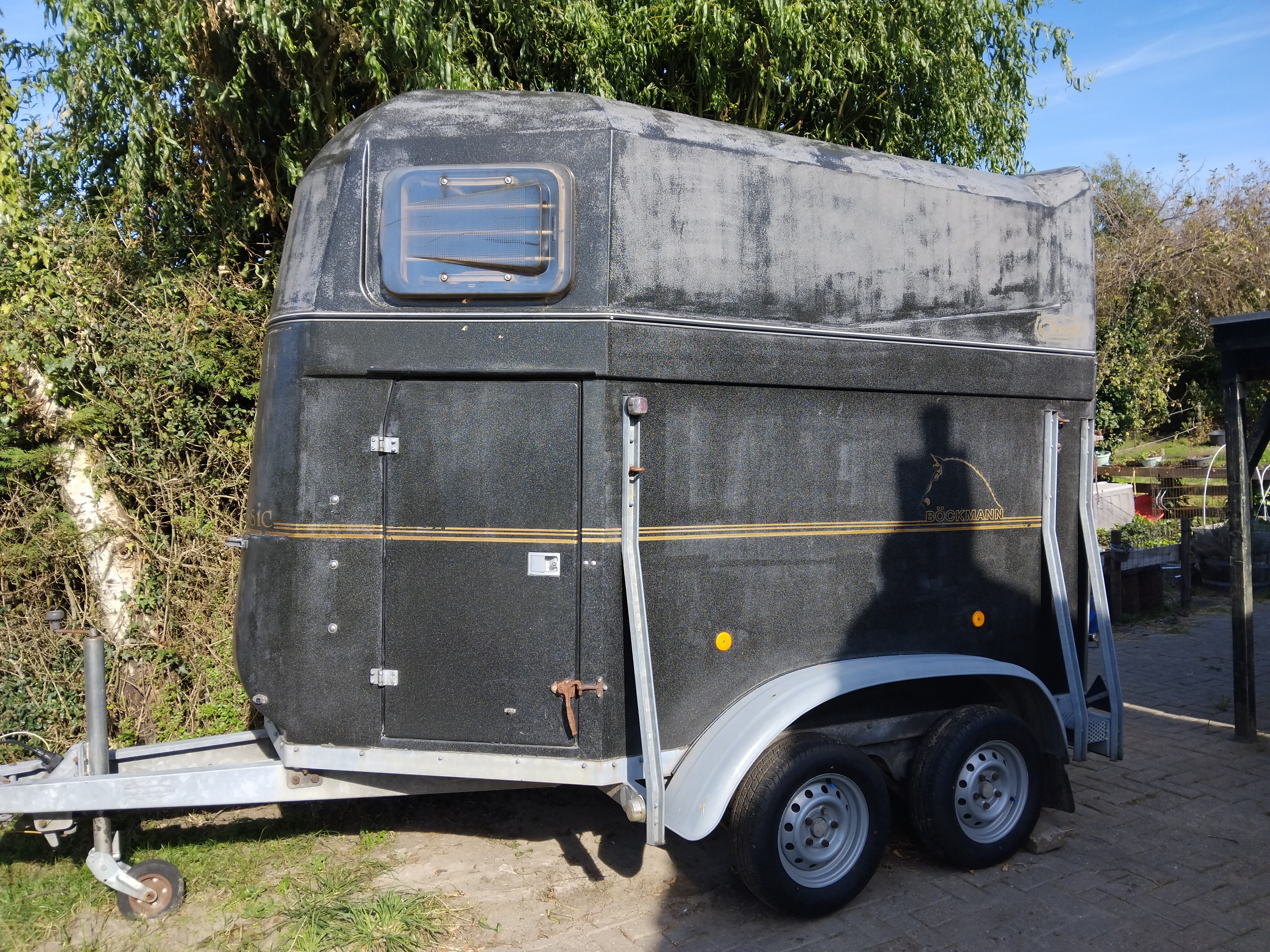 2 paards vol polyester paardentrailer met zadelkamer. Gekocht om met 2 pony’s op stap te kunnen maar helaas laadt 1 pony niet en gaan we over op 1,5 paard.