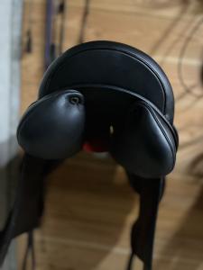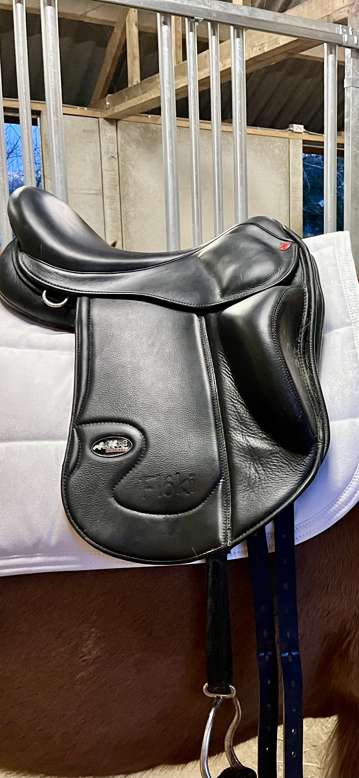 Te koop Karlslund Floki 17 inch ijslanderzadel met wolgevulde kussens. Het zadel is aanpasbaar door middel van verwisselbare kopijzers, inclusief oranje, rood en blauw kopijzer. Het Flóki zadel heeft een diepe en zachte zit die de ruiter een optimale positie geeft. Het zadel heeft monoflap zweetbladen die zorgen voor een nauw contact tussen paard en ruiter.