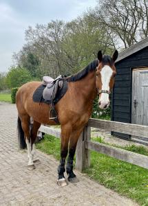 Karakter omschrijving: Een lief vrolijk paard dat houdt van aandacht, koel in het hoofd. Houdt van een spelletje en kriebelen met andere paarden. Makkelijk in de omgang. Ik moet geregeld om hem lachen want het is een beetje een clown.