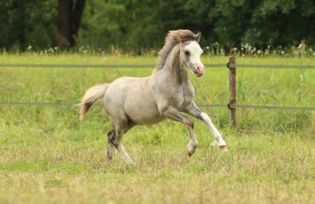 Lief veulen die graag naar je toe komt voor wat kriebels, is heel nieuwsgierig. Loopt hier buiten op de weide jong te zijn.