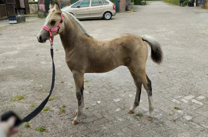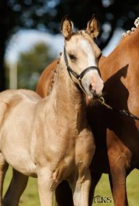 Valk merrieveulen, ingeschreven in het NFX. Haalde een 1e premie op de late veulenkeuring en werd NFX veulen kampioen. Haar vader is de Duitse Rijpony Golden Daim F, moeder is een Stermerrie van Jacodi's Bo's Barclay, oma Kroon Preferent van Jasper. Moeder is 1.44 hoog en getest op Myotonie, Pssm1 en WFFS.