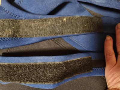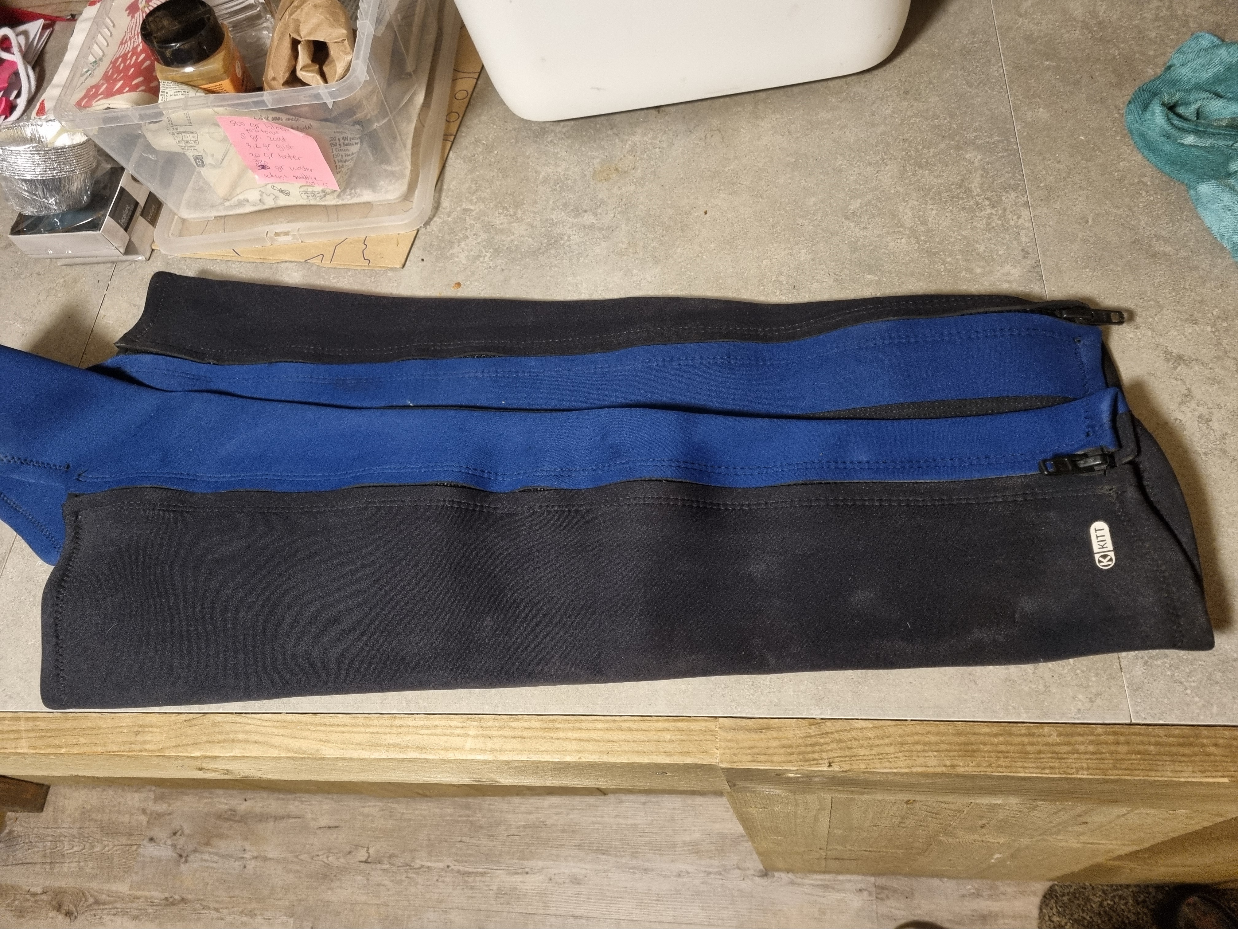 Kitt neopreen longchaps, in heel goede staat. Zwart/blauw, rits goed, klittenband goed.