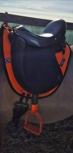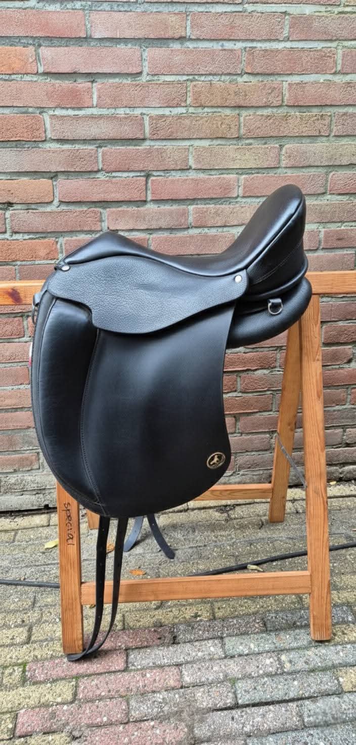 Boomloos dressuur (smalle zit) met verplaatsbare kussens.