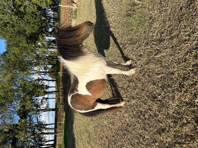 het is een lieve merrie die vanaf kleins af aan in de hand komt, bekend met wandelen, poetsen, wassen, hoefsmid, af en toe longeren. Ook bekend op ander terrein, trailer.kinderen is ze ook gewend.
