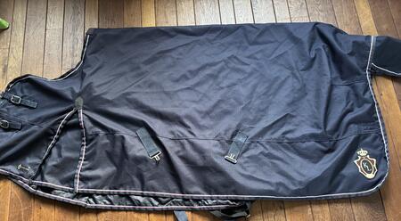 De deken is amper gebruikt en 🧺 gewassen. Er zaten wat verfspatten toen de deken in de schuur lag, maar deze zijn na het wassen bijna helemaal verdwenen.