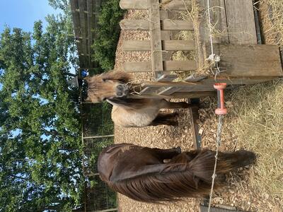 ik heb nog een 30 jarige ruin staan op een stukje paddock achter huis, eventueel zou ik de jonge merrie willen ruilen tegen een oude(re) shet die niet op gras mag staan of misschien kan mijn oude ruin mee met mijn merrietje voor een top plekje