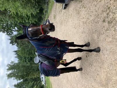 Kees laadt niet graag in de trailer maar staat er rustig op en loopt er netjes uit.