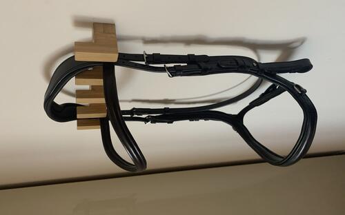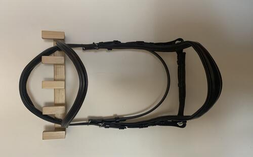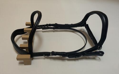 Schockemohle Theta full in bruin. Is gemaakt om bitloos mee te rijden, maar ik heb er bakstukken bij gekocht zodat hij ook met bit te gebruiken is.